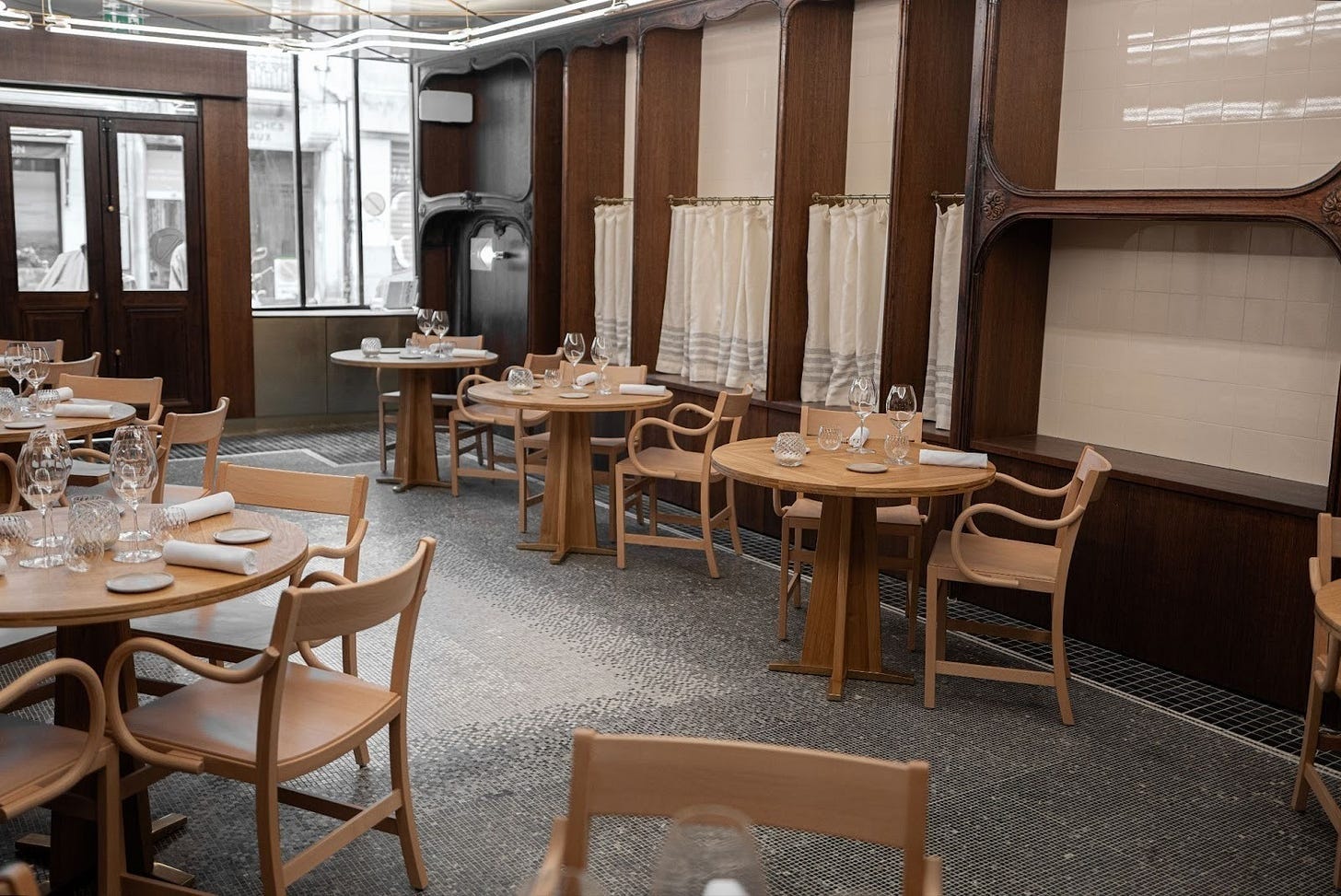 Still gelling after opening in November, but already frequented by a promising mixture of aristocratic locals, like the three poodles accompanying a studiously disheveled divorcee (she told the waiter as much) and the handsome older man with her (who was, also by her telling, her grandfather). Also, alert Parisian design fiends (for the brilliant décor); a regularly changing regiment of young chefs and their friends here to support two of their own; and fashion folks and photographers. This is a friendly, unpretentious place with a winning, tough-to-pull-off equilibrium between the relaxed ambience of a country auberge and the precision of supervailing big-city service. –Alexander Lobrano